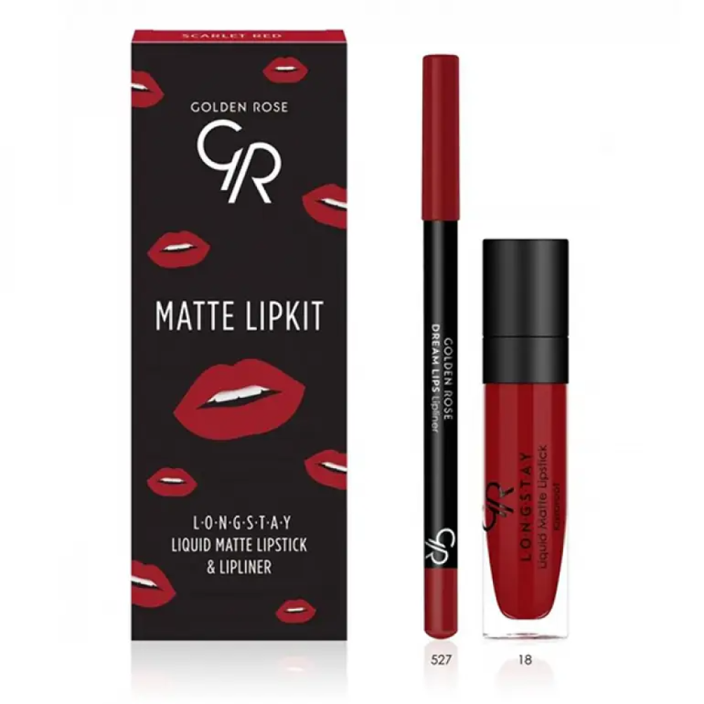 جولدن روز مجموعة احمر شفاه سائل مطفي + قلم تحديد الشفاه